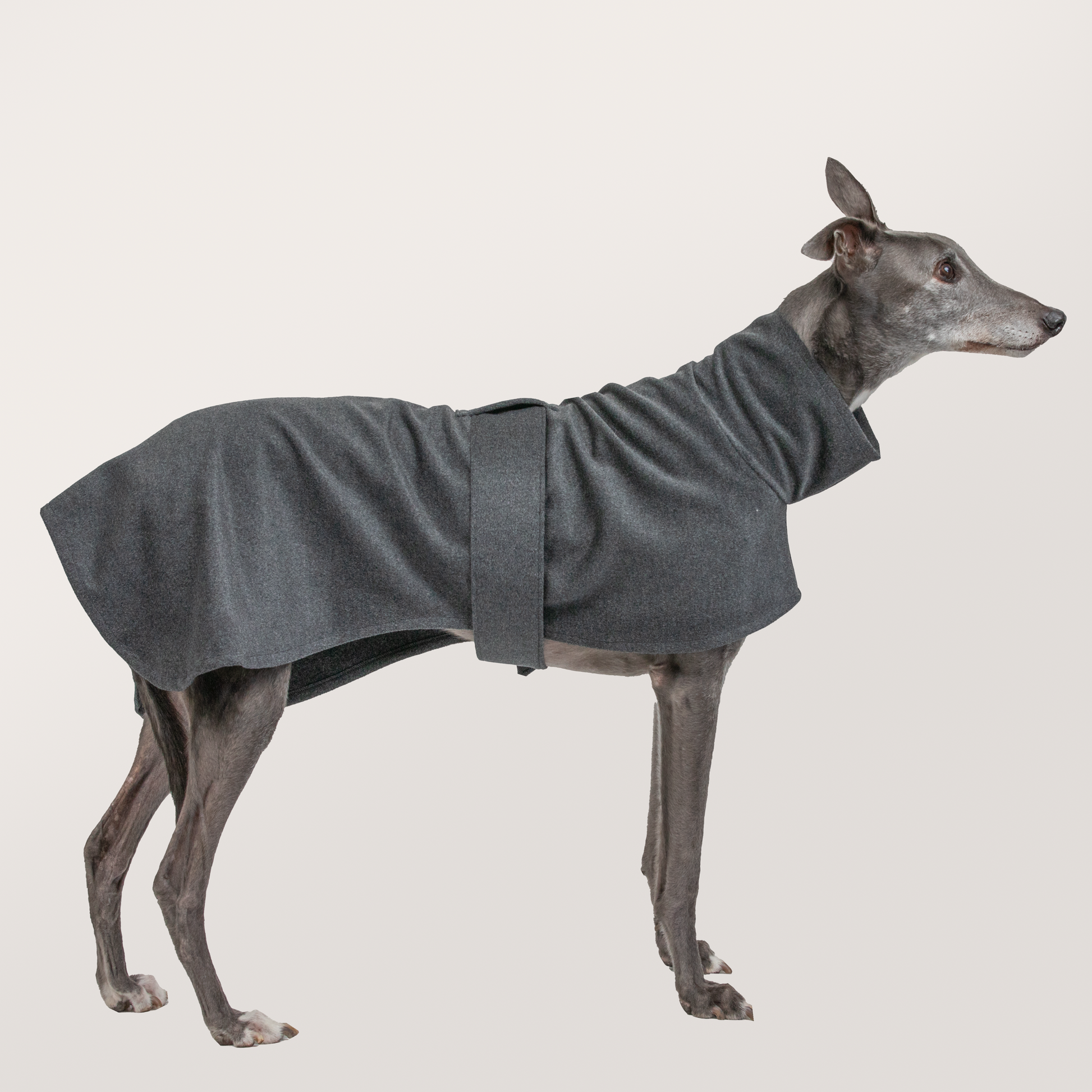 A cashmere wool blend, exquisitely soft, sensuous, light and warm, with an adjustable and detachable belt. This stylish, timeless piece reflects the inherent beauty and elegance of your Greyhound. Designed and handcrafted with kindness locally in Whanganui, New Zealand, by Once Upon A Kind. Suitable for cold and dry weather to help your Greyhound stay warm and active.